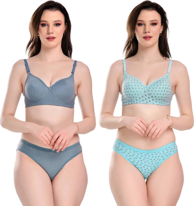 Full/Medium Coverage Cotton, Lace /Printed Padded & Non-Wired Lingerie Set