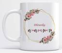 LOROFY Name Dhruvika Printed Pink Floral Design White Ceramic Coffee Mug (350 ml)