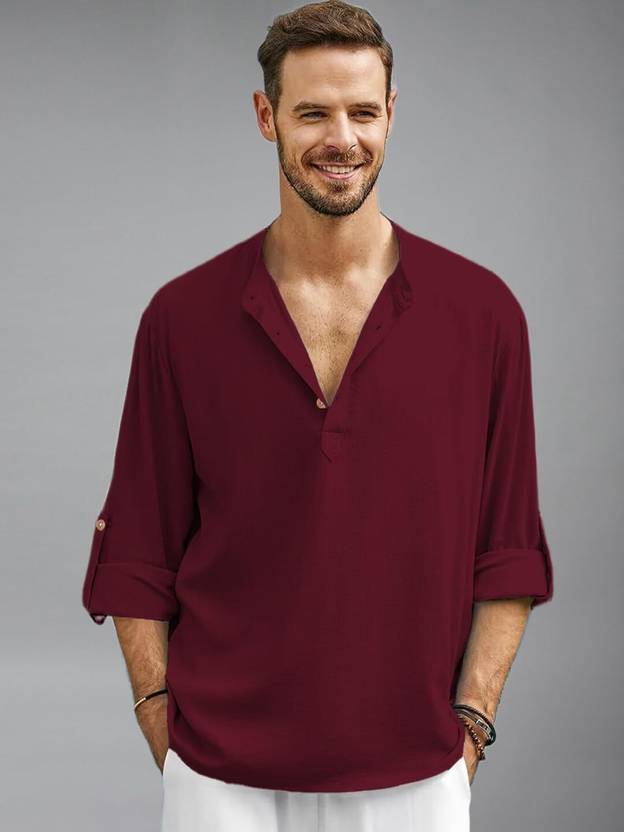 FireFish Men Solid Cotton Blend A-line Kurta (Maroon)