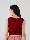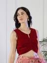 NEUDIS Women Maroon Velvet Round neck Blouson Crop Top