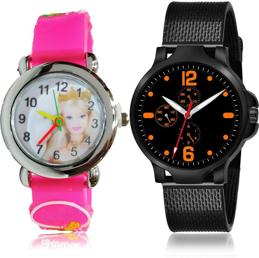 Dial Colour : White And Black ; Band Colour : Pink And Black ; Case Shape : Round ; Band Material : Plastic ; Case Diameter : 29 And 42 mm ; NEUTRON New Collection Doll Kids Pink And Black Colour Analog Plastic Belt 2 Watch Combo For Boys And Men - BK18-(70-S-10)