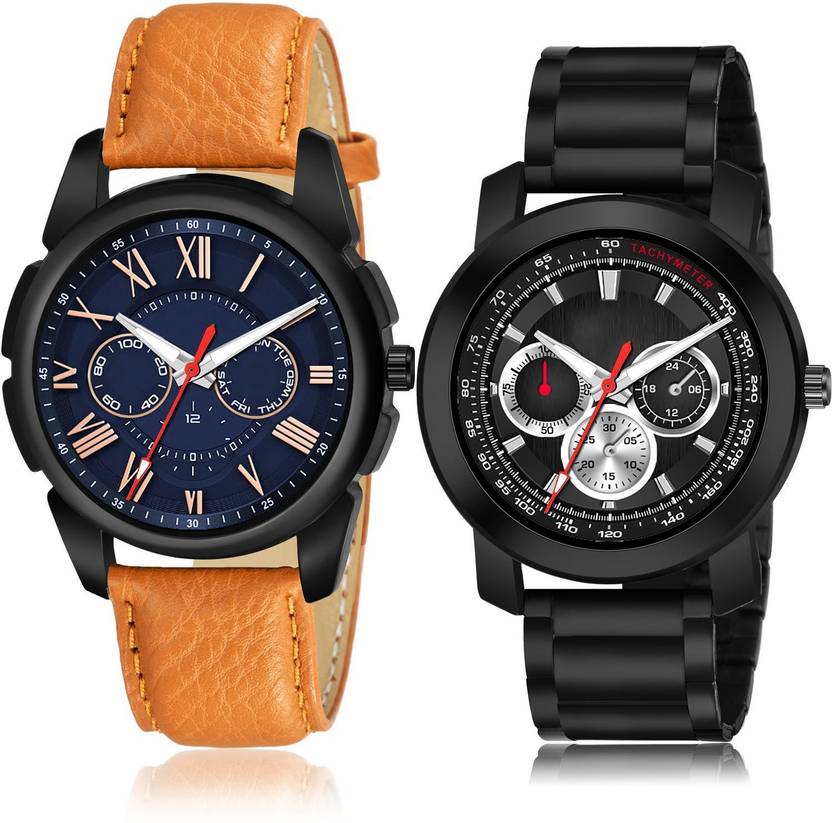 Dial Colour : Blue And Black ; Band Colour : Orange And Black ; Case Shape : Round ; Band Material : Genuine Leather And Stainless Steel ; Case Diameter : 43 And 47 mm ; NEUTRON New Heart professional and black chain Orange And Black Colour Analog Genuine Leather And Stainless Steel Belt 2 Watch Combo For Boys And Men - S362-(14-S-20)