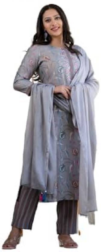 NEW PPINCH NEW PPINCH Fabric Pure Muslin Grey Color Siffon Dupatta Embroidery On Yock Kurti Pants With Dupatta For Girls And Women. Casual Festive Wear Kurti & Duppata with Bottom Pant for Women and Girls. It Will Keep You Comfortable for a Casual Look and Will Be Soft Against Your Skin. the Kurti Features a 3/4th Long Sleeve and Has a Round Neck Design Giving the Outfit a Stylish Look and Feel. Fabulous Print That Will Give You a Perfect Look. the Print Makes It a Captivating Choice. for Those Who Love to Keep Their Look Simple, This Kurtis Is a Must-Buy. This Kurta Makes It an Apt Choice for All Seasons.