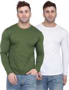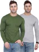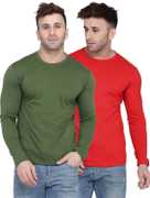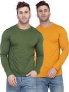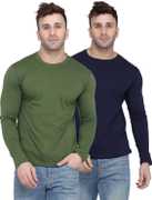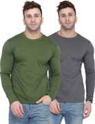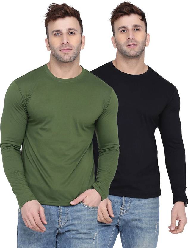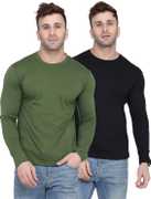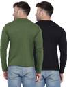Solid Men Full Sleeve Round Neck Olive Green and Black T-Shirt (Pack of 2)