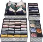 नफी एसेंशियल Set of 4 Foldable Storage Box Drawer Divider Organizer Undergarments Organizer (ग्रे)