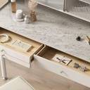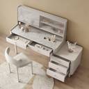 This marble-topped vanity table has four spacious drawers that can hold your lipstick, rouge, eye shadow, and other small cosmetics, making it ideal for storing make-up supplies. This cosmetics table is a work of art that seamlessly blends an exquisite and modern aesthetic. Its potent glamour will give your room an air of luxury beauty, making it the ideal option to finish off your bedroom's interior design!