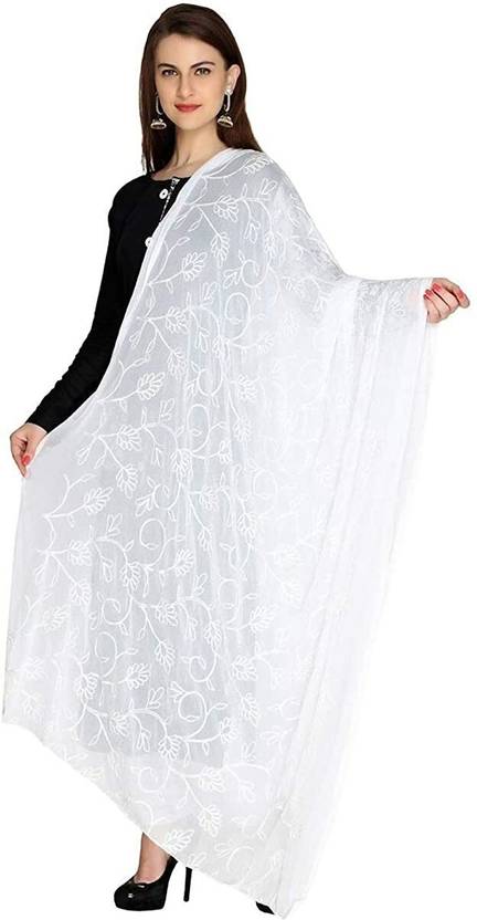 शिफॉन एम्ब्रॉइडरेड सफेद दुपट्टा