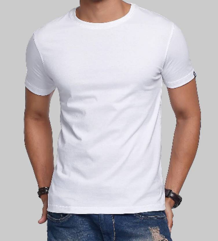 Men Solid Round Neck Cotton Blend White T-Shirt