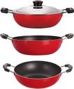 NIRLON Kadhai 26 cm, 24 cm, 25 cm diameter with Lid 3.6 L, 2.1 L, 2.5 L capacity (Aluminium, Non-stick)