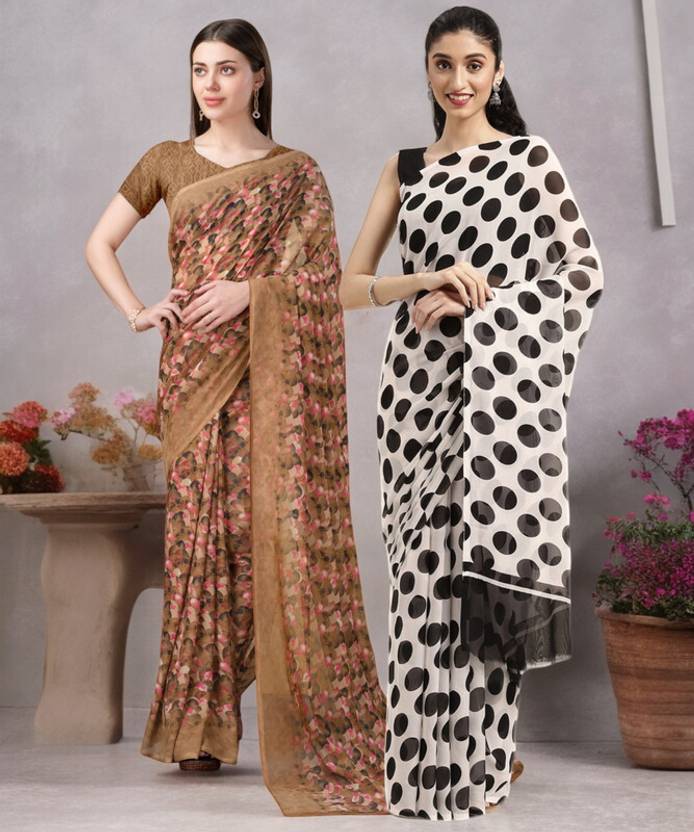 TTH Printed Bollywood Georgette Saree (Pack of 2, Multicolor)