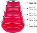 Nirvika Stainless Steel Powder Coating Red Patila set of 5 Piece इंडक्शन बॉटम कुकवेयर सेट (स्टेनलेस स्टील, 5 - पीस)