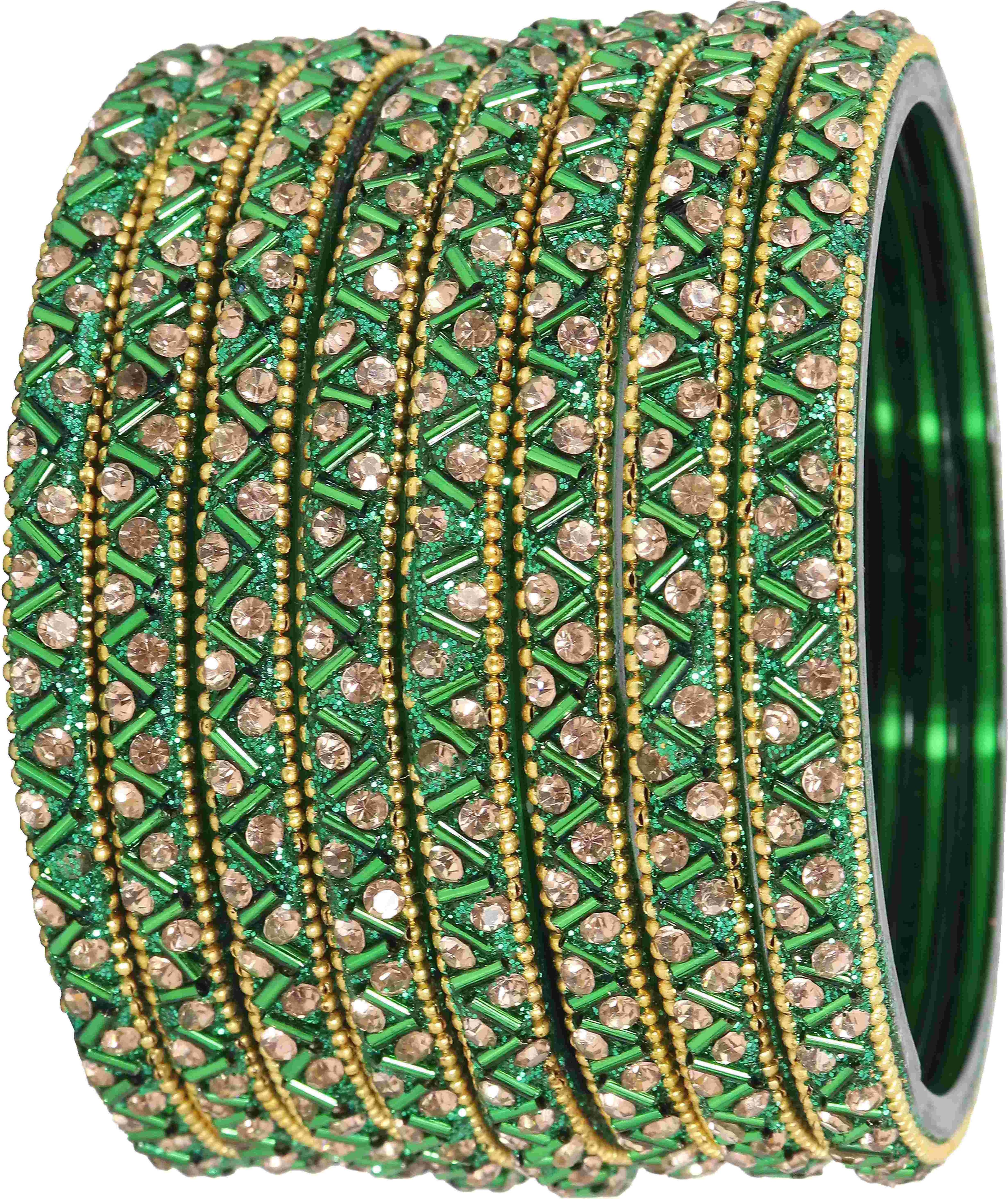 NMII Glass Bangles Set For Girls and Women Studded Zircon Gemstone and Beads I Glass Bangles I Women bangles I Bangles for women latest design