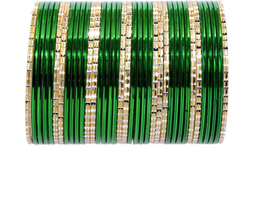 NMII Non-Precious Metal Base Metal with Simple and Cutting Pattern Glossy Finished Bangle Set For Women and Girls,