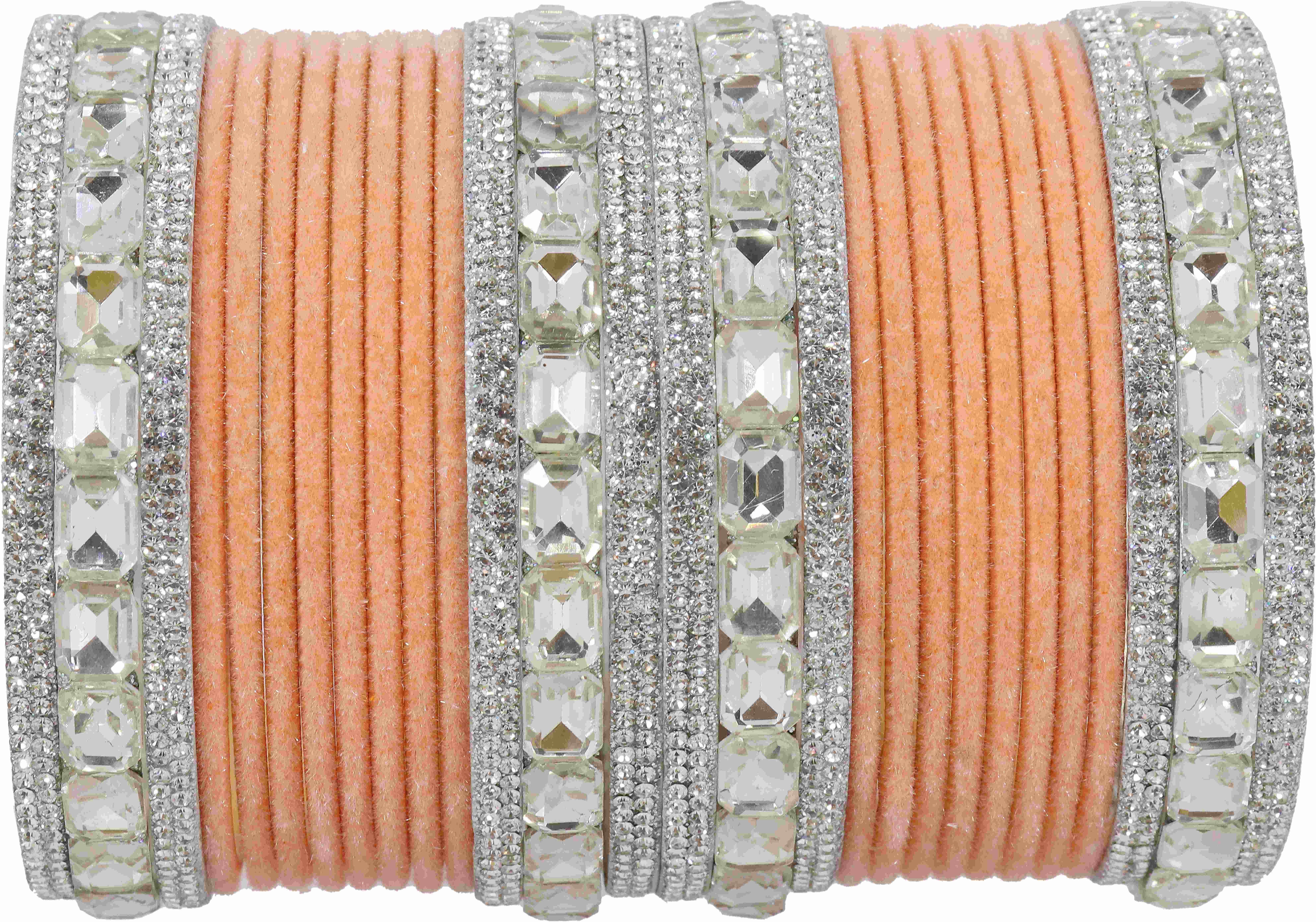 NMII Chuda Choora Set For Girls and Women Studded Zircon Gemstone and Velvet Bangles I Metal Bangles I Women bangles I Bangles for women latest design (Pack of 28)