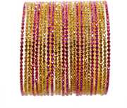 NMII Non-Precious Metal Base Metal with Gold Zircon Gemstone Studded worked Glossy Finished Bangle Set For Women and Girls,