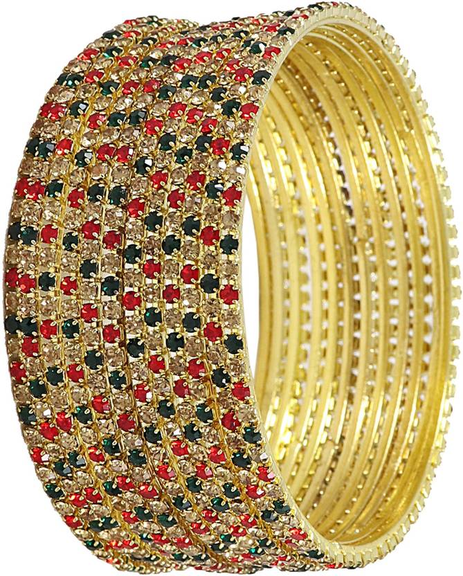 NMII Non Precious Metal Base Metal With Zircon Gemstone Studded Glossy Finished Bangle Set For Women and Girls