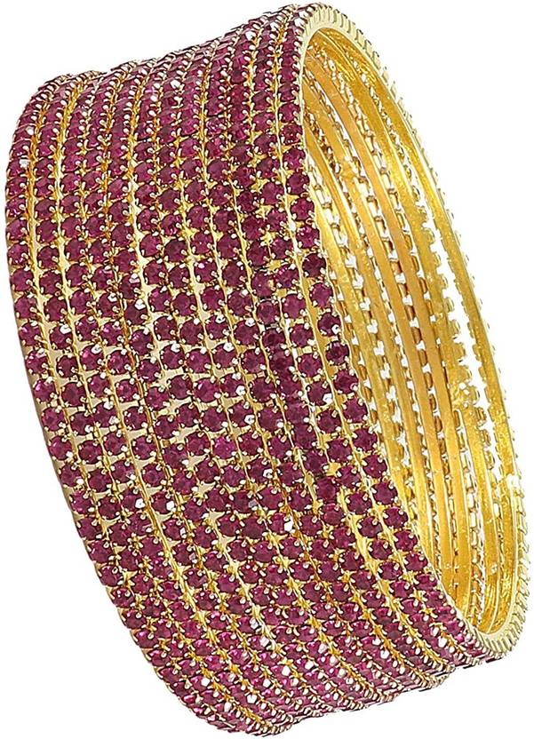 NMII Non Precious Metal Base Metal With Zircon Gemstone Studded Glossy Finished Bangle For Women and Girls