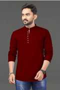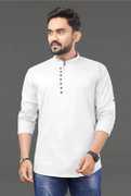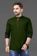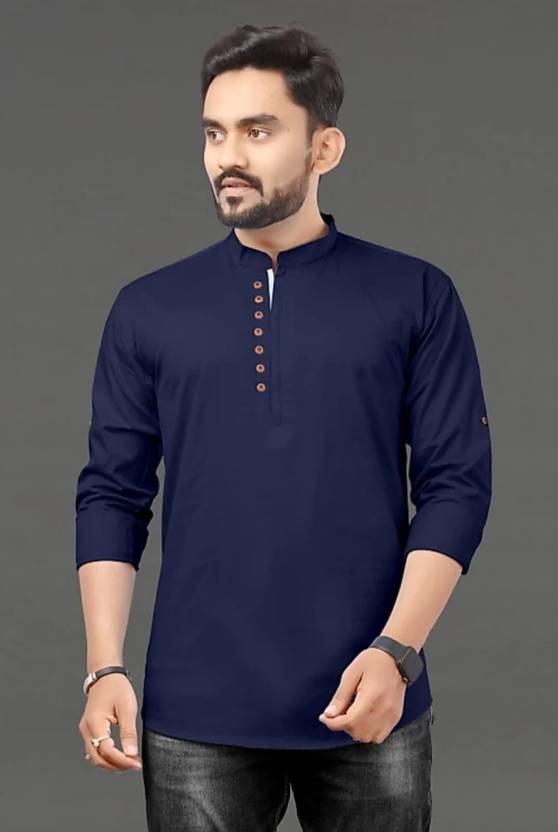Men Solid Cotton Blend Straight Kurta (Dark Blue)