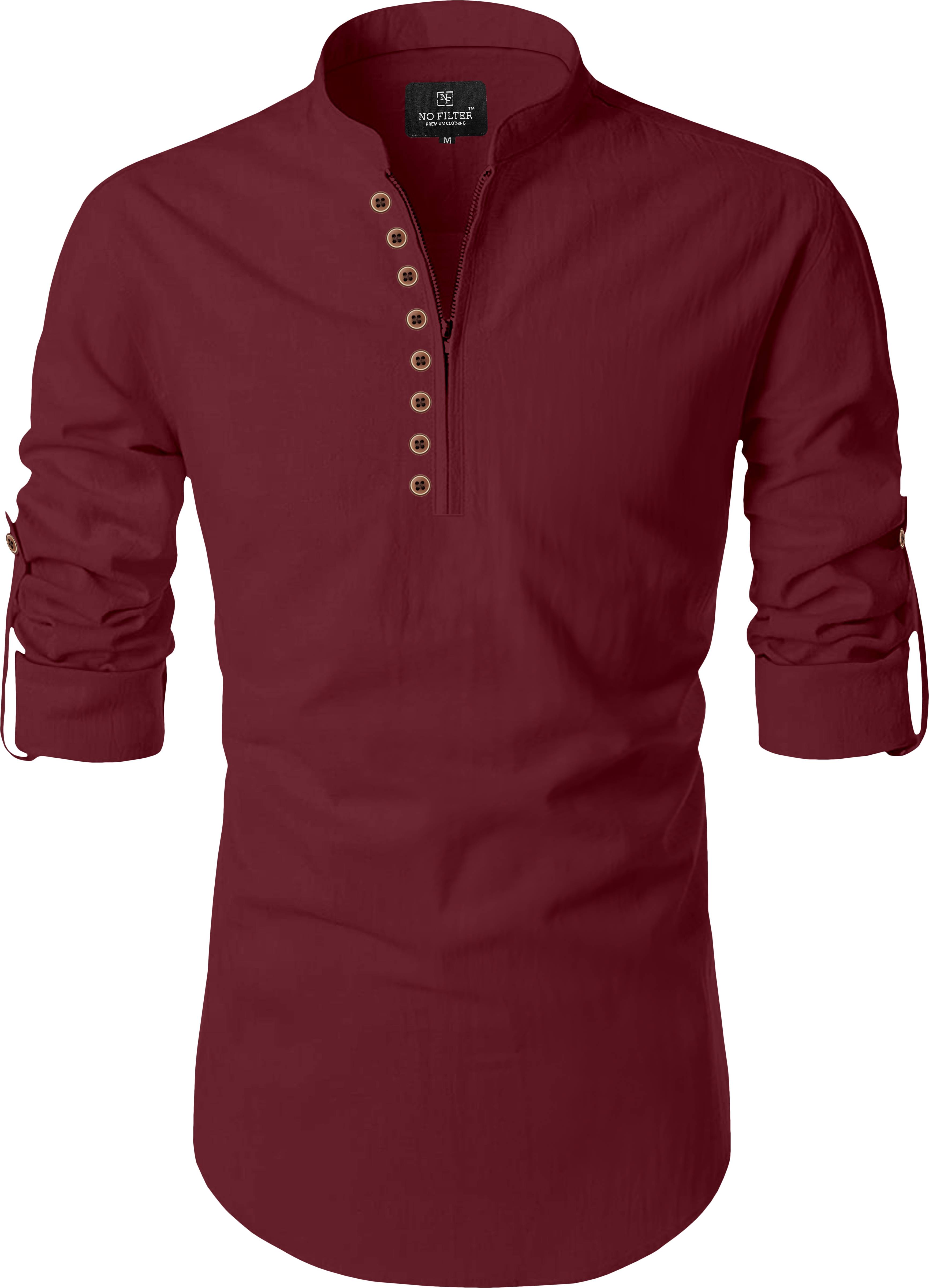 नो फिल्टर पुरुषों के लिए सॉलिड स्ट्रेट कुर्ता (मैरून)
