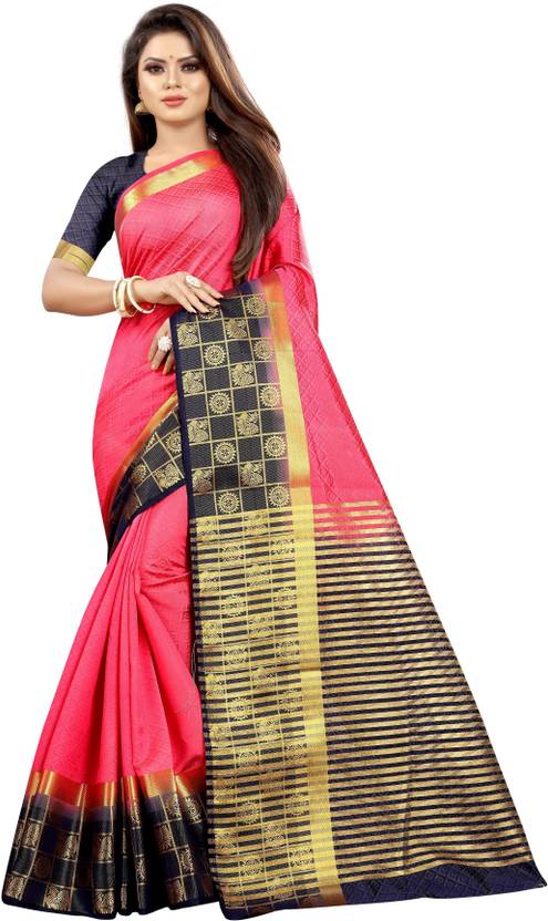 Woven Kanjivaram Tussar Silk, Pure Cotton Saree (Pink)
