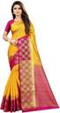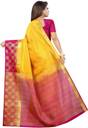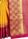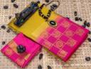 Woven Kanjivaram Tussar Silk, Pure Cotton Saree (Pink, Yellow)