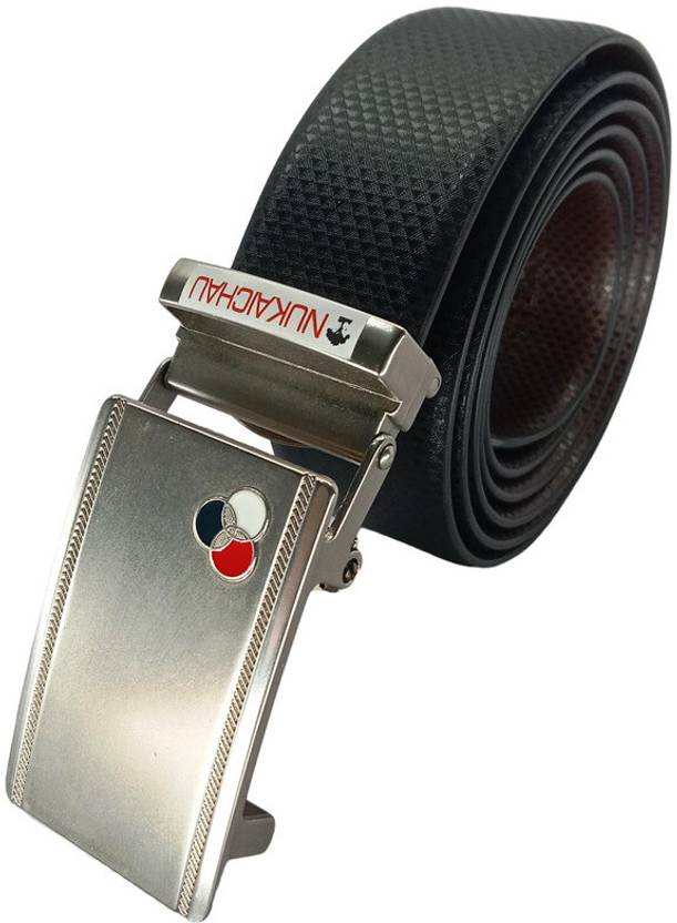 Auto Lock Buckle Reversible 2 colour No More Holes & Free Size Belt : Nukaichau Industry Introducing a unique sliding mechanism. No pushing. No pulling. Just slide the belt into the buckle and adjust for a superbly comfortable fit. This buckle simply auto-locks the belt. To release, just gently push the lever. One big size that fits all waist (16,18,20,22,24,26,28, 30, 32, 34, 36, 38, 40, 42, 44,46). Made from full grain vegan synthetic leather (Pu-Leather). Handcrafted for those who do not like animal leather products. Adjustable up to waist 44. To adjust, trim the belt according to your size by removing the buckle and cutting the edge as per your waist. This belt will add a stylish look to your jeans, chinos, formal pants and trousers. Perfect gift for your loved ones. Stylish nickel-free zinc alloy buckle that is elegantly designed with class.