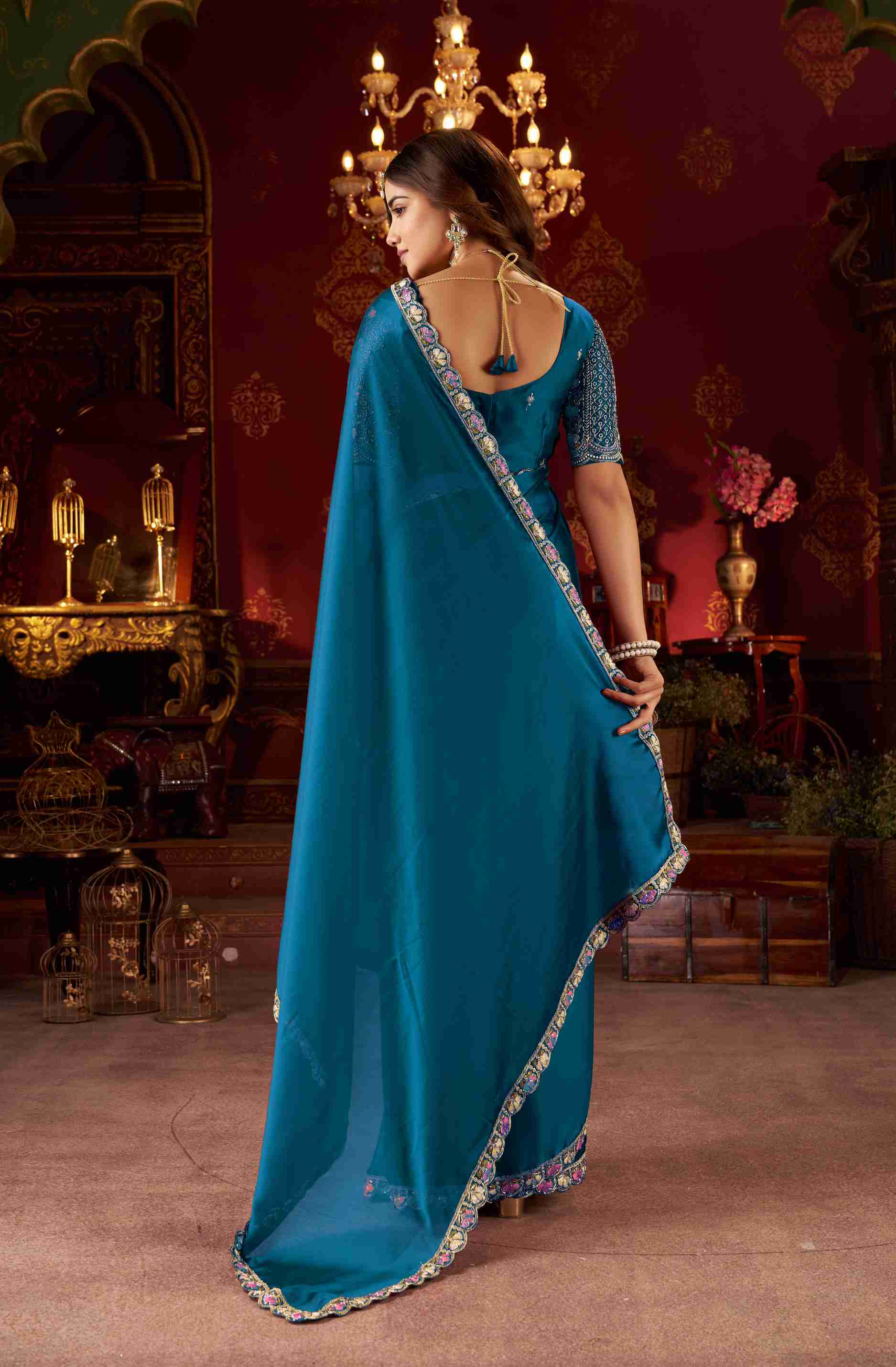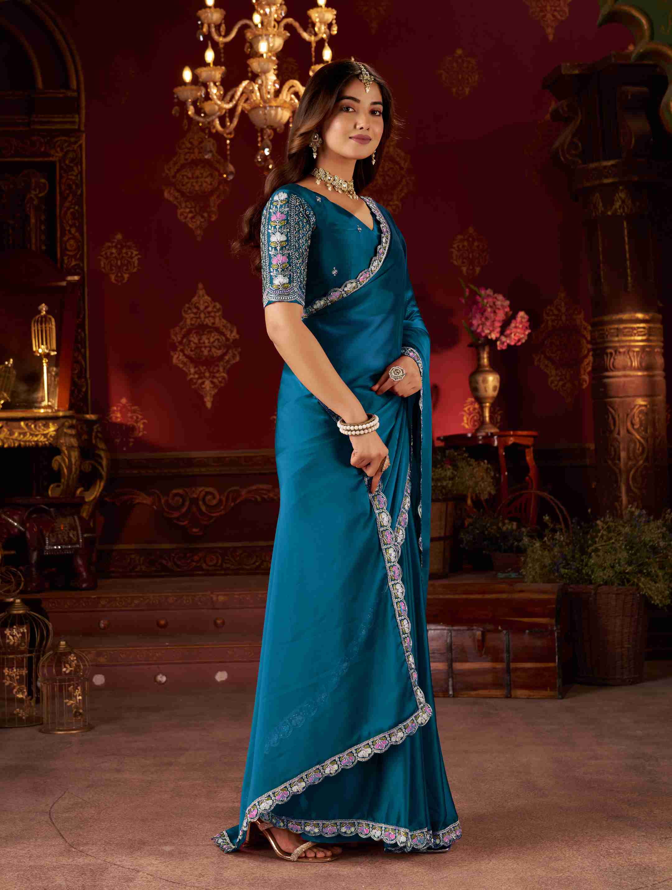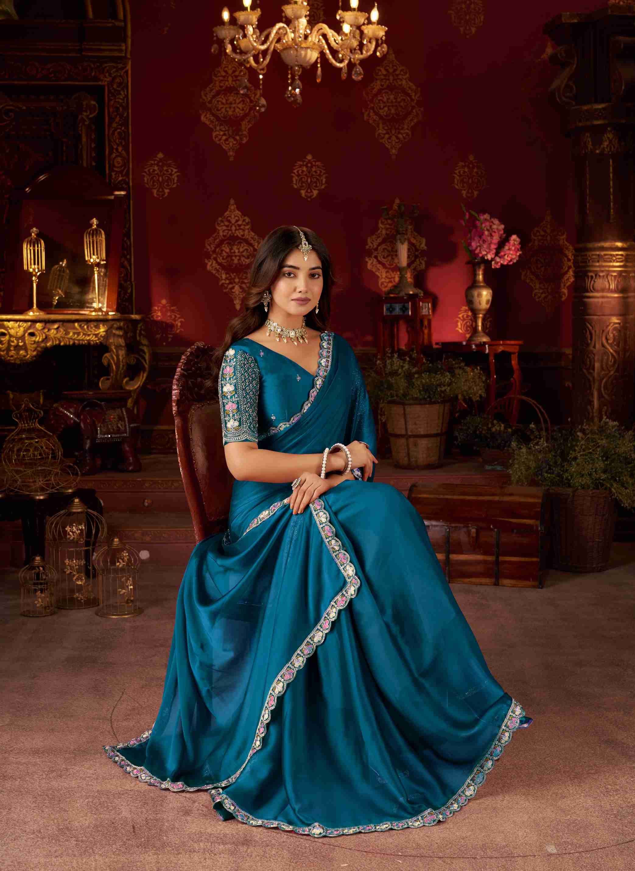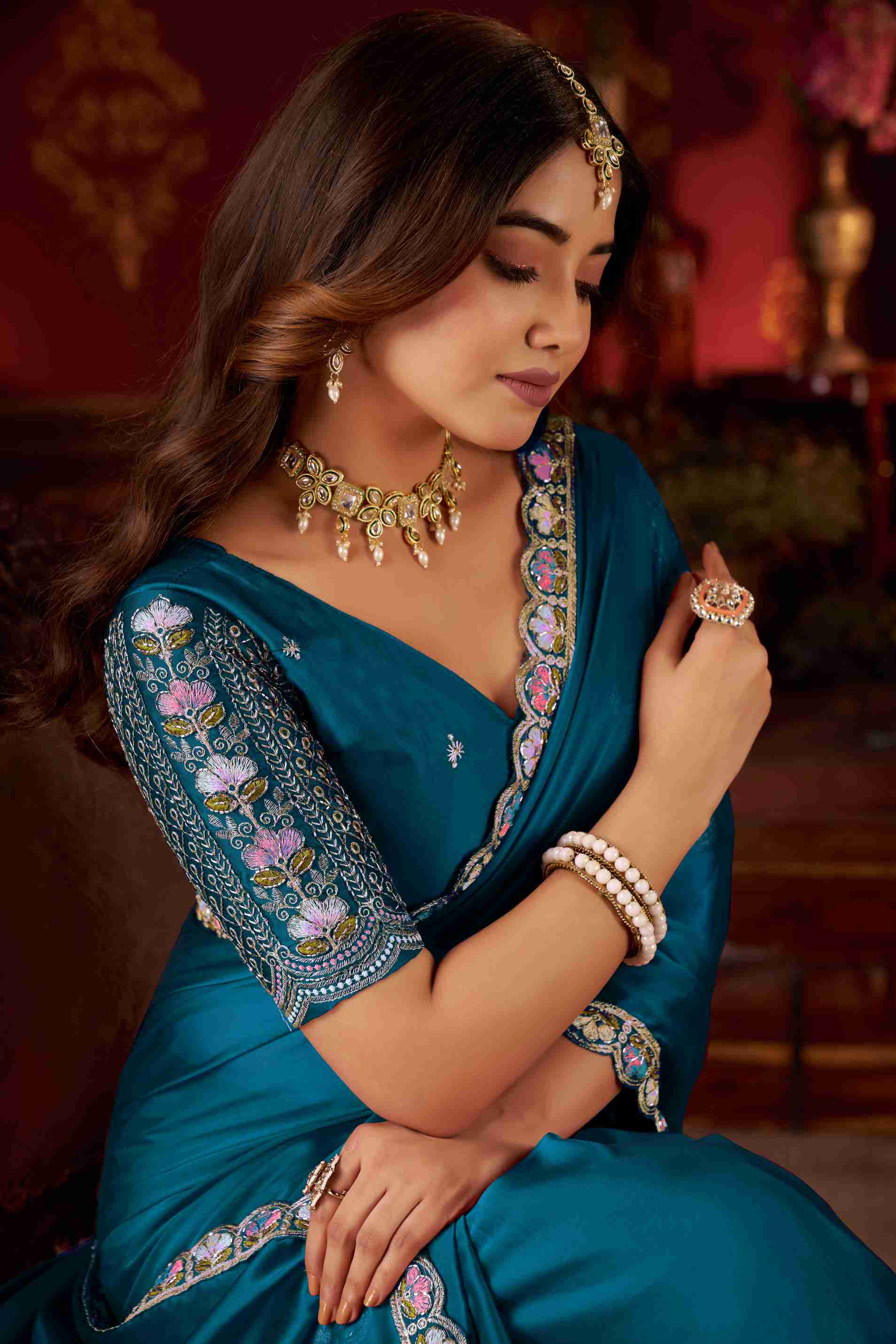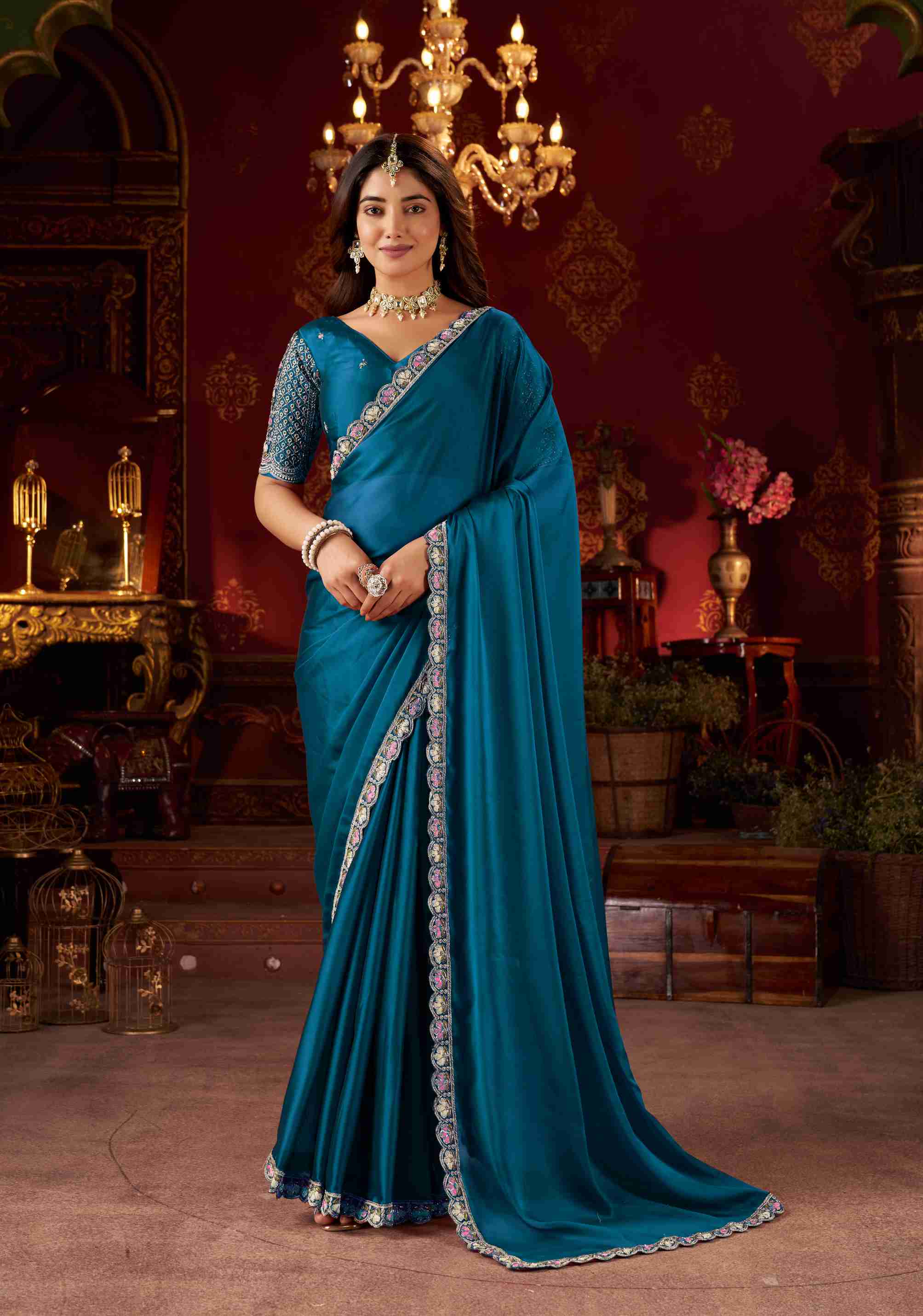 सॉलिड/प्लेन बॉलीवुड सिल्क ब्लेंड साड़ी (गहरा नीला)