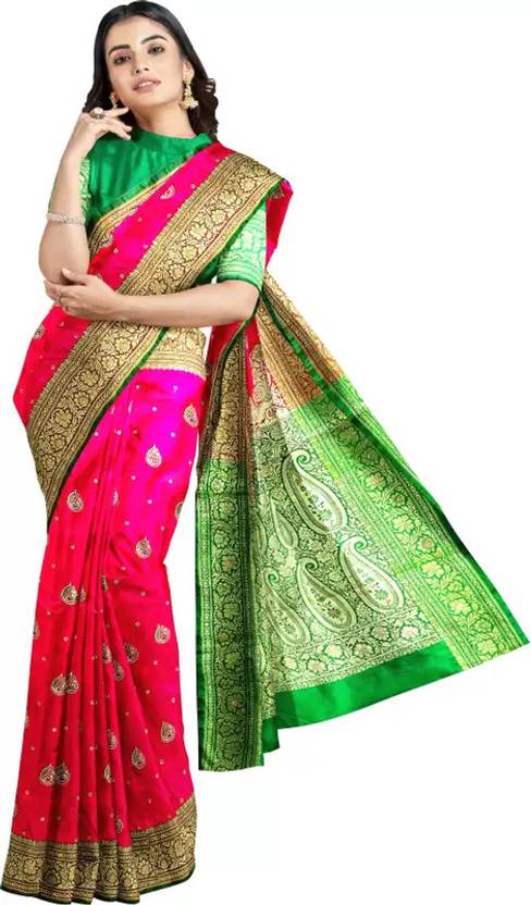 NZARI specialises in handloom premium quality Banarasi Satin Silk Saree. Crafted with excellent quality of this shiny fabric with embroidery work colourfully covers the entire body in elegant and irresistible patterns. These sarees are made from soft, breathable Satin Silk fabric, perfect for comfortable wear. Perfect for all occasions be it party, wedding, pooja or festivals this collection is going to be your companion for all your needs. You can pair these with heels or flats of your choice to complete the look. Wear it with matching accessories to get complemented on next ethnic wear look.are highly versatile and suitable for a variety of occasions, ranging from weddings and festive celebrations to formal events and parties. They are prized for their timeless elegance and can be passed down as heirlooms from one generation to the next. These sarees can be accessorized with traditional Indian jewelry such as gold or pearl necklaces, earrings, bangles, and anklets to complete the ensemble. They can be draped in various styles, including the classic Nivi drape or modern fusion drapes, depending on the wearer's preference and the occasion.The silk used in these sarees is sourced from Banaras (Varanasi), a city in India famous for its centuries-old tradition of silk weaving.