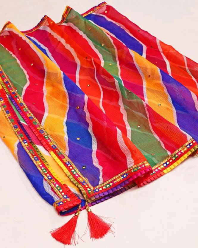 Cotton Silk Embroidered, Embellished, Striped Multicolor Women Dupatta