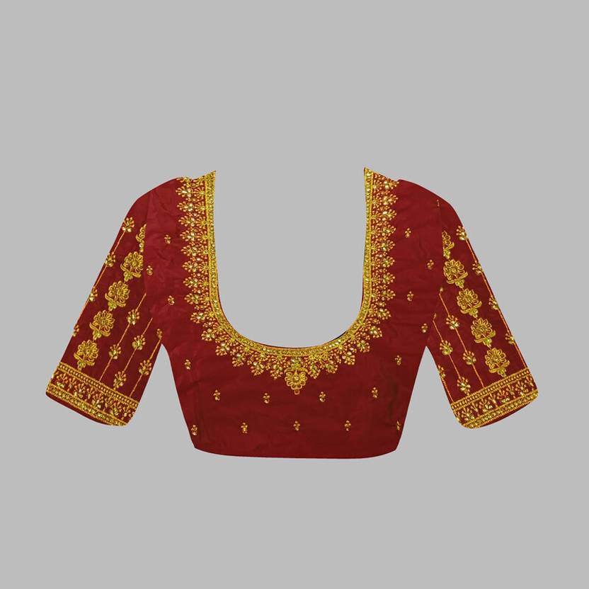 OMINI FASHION Unstitched Art Silk Blouse Material Embroidered