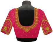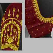 Best qualitycomputer work blouse piece of 1 meter length on aaku pattu fabric with hand work blouse. Unstitched blouse piece. Womens wear new arrival aaku pattu fabric embroidery work unstitched blouse piece. It is designed specially to wear in special occassions. It gives a special cool and attractive look on you. blouses to wear on special occassions like mehendi vibes, engagement evenings,cocktail paries, pooja rites. womens wear blouse pieces. unstitched blouse piece. Colour may be look difference, becasue of mobile view and photo shoot.