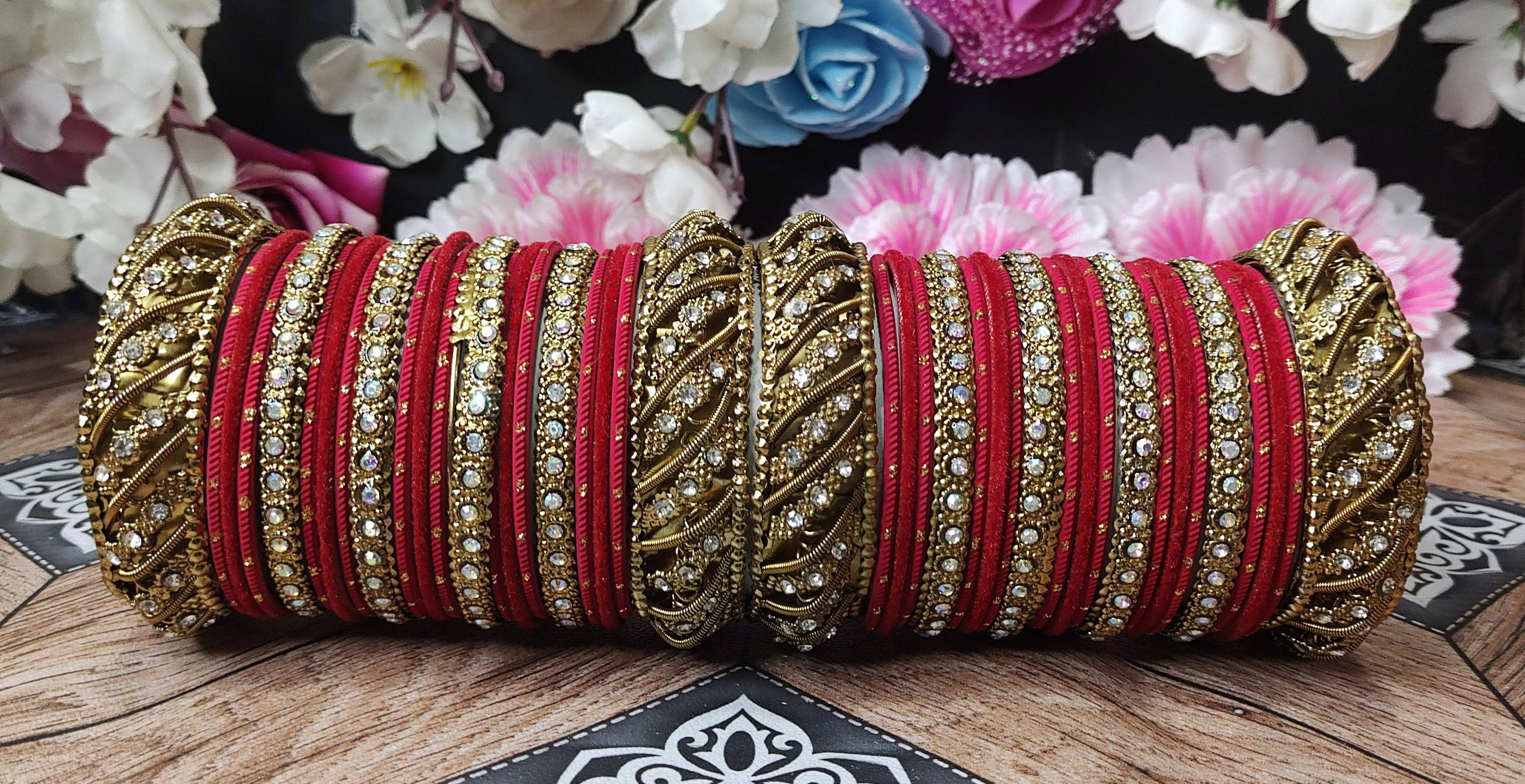 Crafted with premium materials and designed to withstand the test of time, our Harmony Metal and Velvet Bangles Set promises enduring quality and unparalleled beauty. Each set comes elegantly packaged, making it an ideal gift for yourself or a loved one.