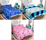 Oroxo Polycotton Queen Flat 150 TC Floral Bedsheet (Pack of 3, Deep-Matix-Mouse)