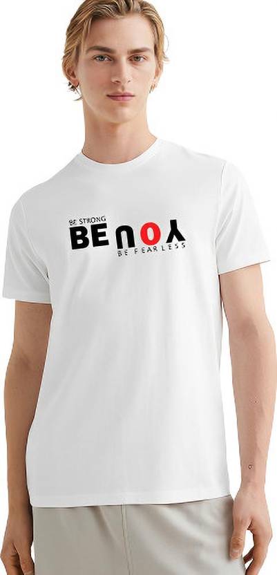 P Monkey Men Typography Round Neck Pure Cotton White T-Shirt
