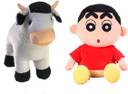 P I SOFT TOYS pi cow + shinchan soft toy for kids , for surprise gift , for party gift , and for many other occasion . - 30 cm (Multicolor)