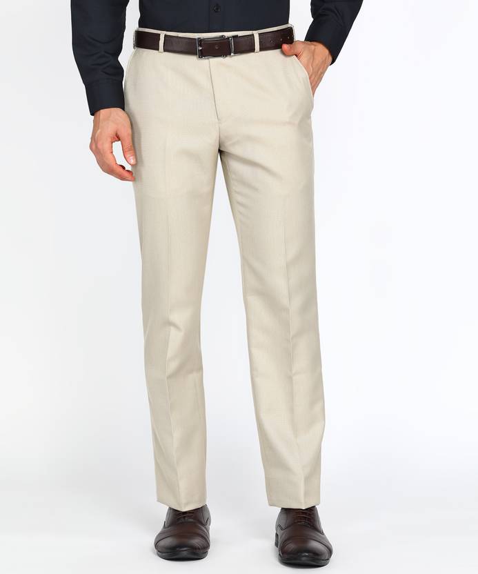 पार्क एवेन्यू पुरुषों के लिए बेज रेगुलर फ़िट ट्राउज़र्स