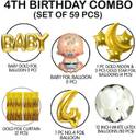 COMPLETE 4TH BIRTHDAY DECORATION KIT FOR BOYS- This premium quality 4th year bday kit includes : 1pc BABY letter foil baloon, 1pc number 4 golden foil baloon, 3pcs golden star foil, 1pc golden moon foil, 50pcs white metallic balloons.