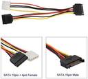 Paruht Power Sharing Cable 0.2 m 15 Pin SATA Male to 4 Pin IDE Molex Female + SATA Female Extension Cord Wire (Compatible with SATA, Hard Drive, SDD, HDD, DVD, DVD, PCI Cards, Motherboard, 1P - Reddish Black, One Cable)