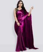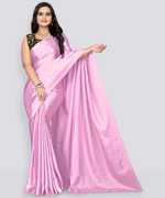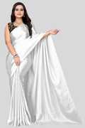 PCDESIGNER सॉलिड/प्लेन बॉलीवुड साटन साड़ी (सफेद)