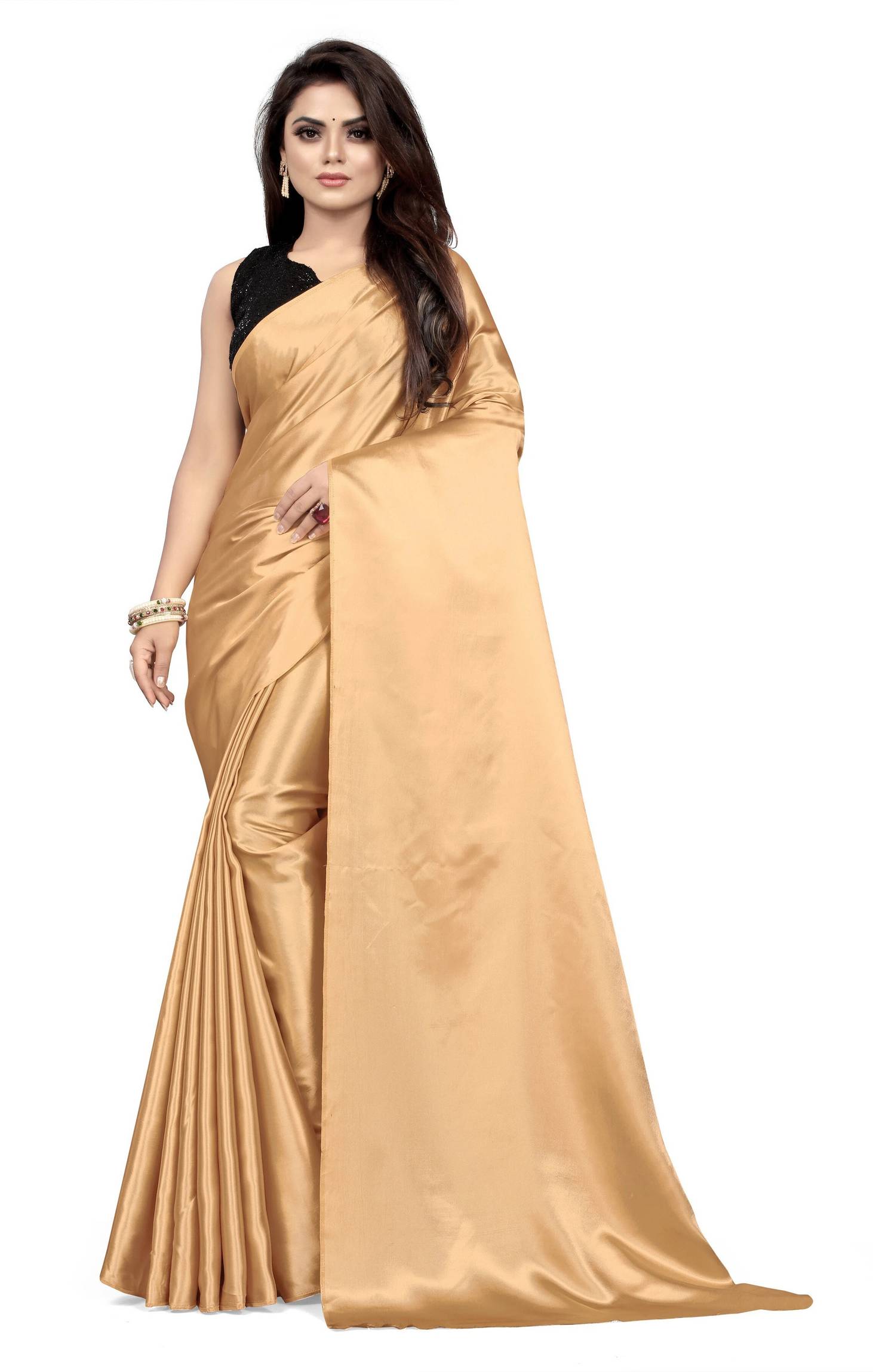 Solid/Plain Bollywood Satin Saree (Beige)