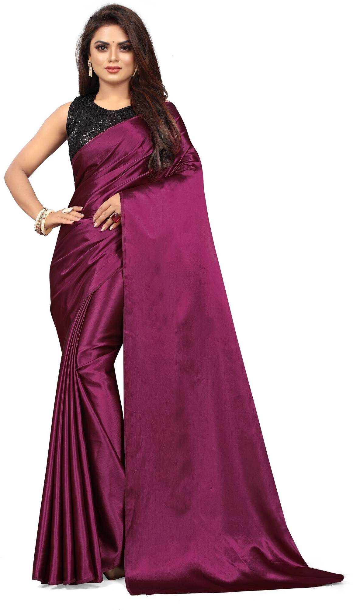 PCDESIGNER सॉलिड/प्लेन बॉलीवुड साटन साड़ी (बैंगनी)