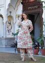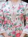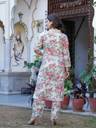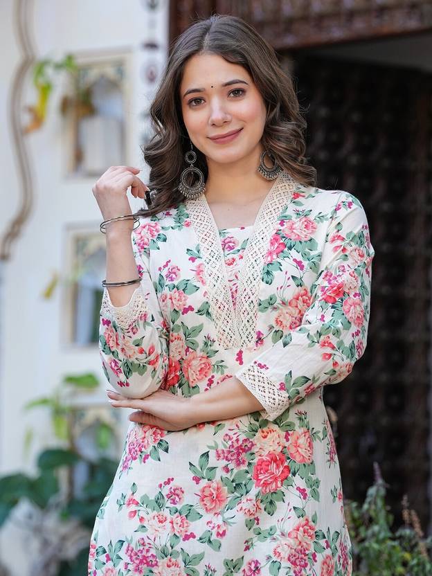 वुमन्स फ्लोरल प्रिंटेड कॉटन कुर्ता सेट, डिज़ाइंड फॉर स्टाइल एंड कम्फर्ट. क्राफ्टेड फ्रॉम प्रीमियम क्वालिटी कॉटन फैब्रिक, दिस सेट कीप्स यू कूल एंड कम्फर्टेबल ऑल डे लॉन्ग. द स्ट्रेट कुर्ता फीचर्स डेलिकेट लेस वर्क ऑन द V-नेकलाइन एंड स्लीव एजेस, ऐडिंग ए टच ऑफ सोफिस्टीकेशन. इट्स वाइब्रेंट पिंक एंड ग्रीन फ्लोरल प्रिंट स्टैंड्स आउट ब्यूटीफुल्ली अगेंस्ट द सॉफ्ट क्रीम बैकग्राउंड, गिविंग ए फ्रेश एंड ग्रेसफुल वाइब.