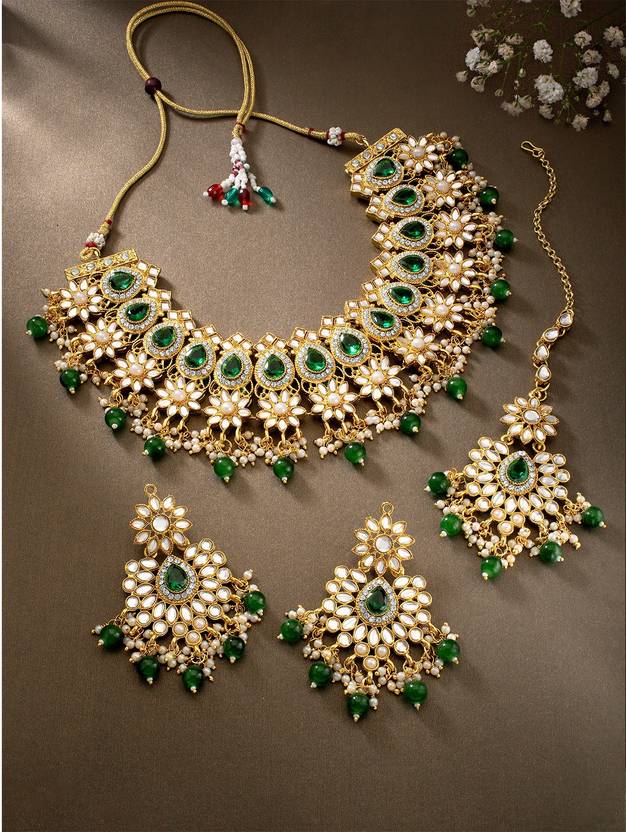 नेकलेस, इयररिंग & माँग टिक्का सेट