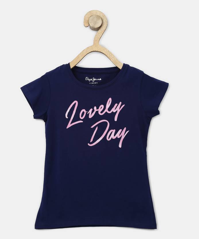 पेपे जीन्स लड़कियाँ प्रिंटेड कॉटन ब्लेंड रेगुलर टी शर्ट (नीला, पैक ऑफ 1)
