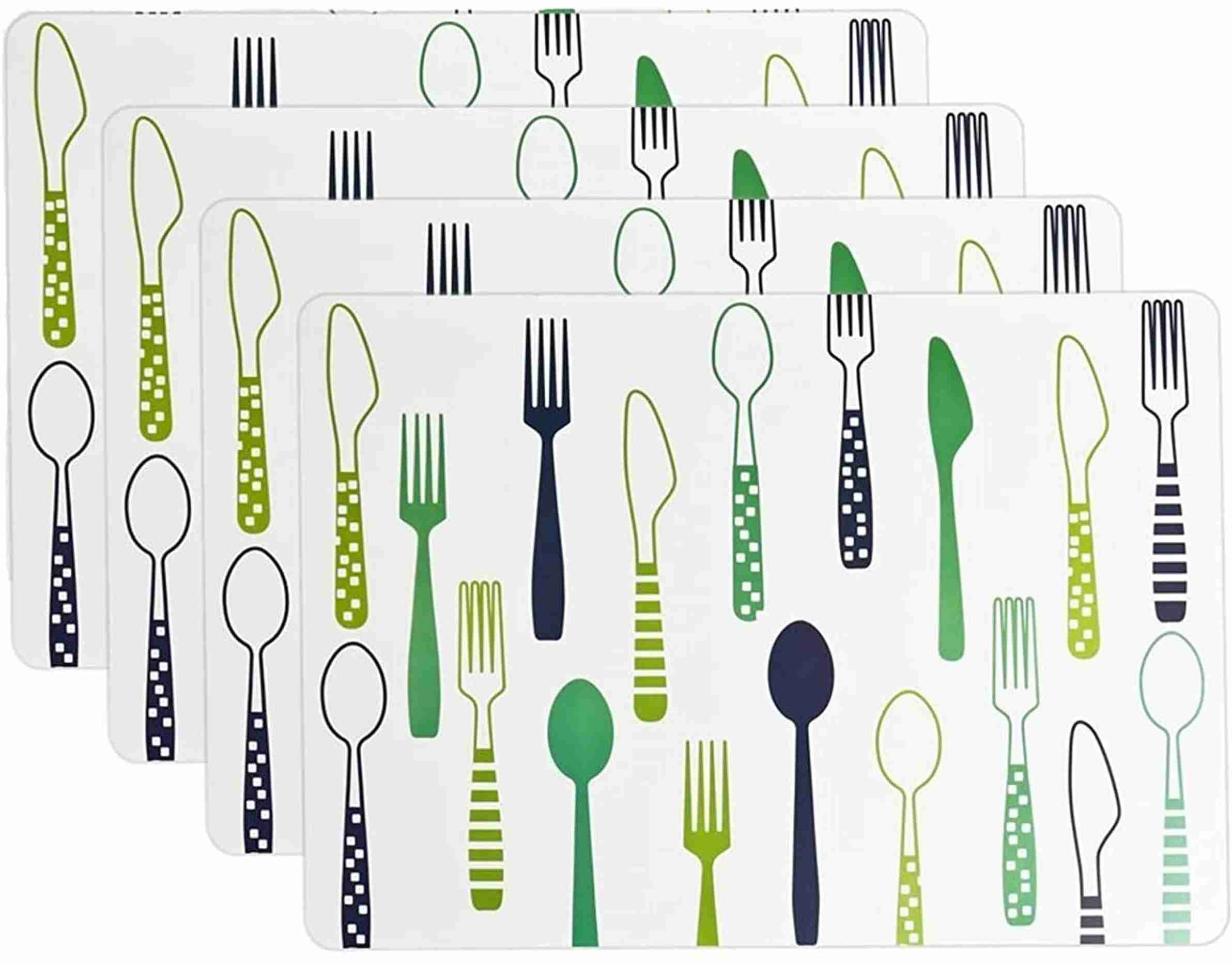 Rectangular Pack of 4 Table Placemat (Green, Plastic)