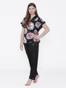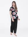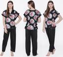 Phalin Women Floral Print Black Top & Pyjama Set
