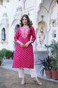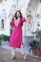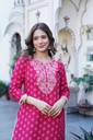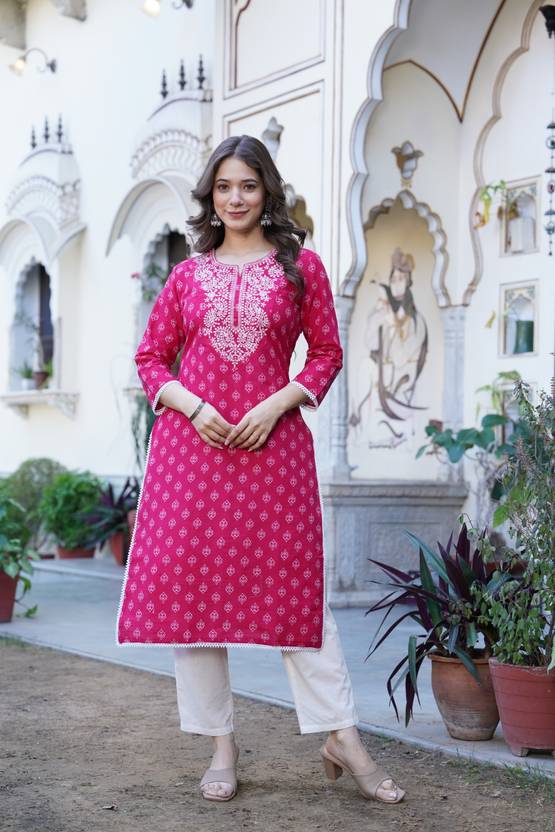 फिजिल महिलाओं के लिए एम्ब्रॉइडरेड स्ट्रेट कुर्ता (गुलाबी)