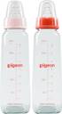 Pigeon GLASS BOTTLE 240ML PINK & RED WITH ADD NIPPLE L-TWIN PACK - 240 ml (TRANSPARENT)