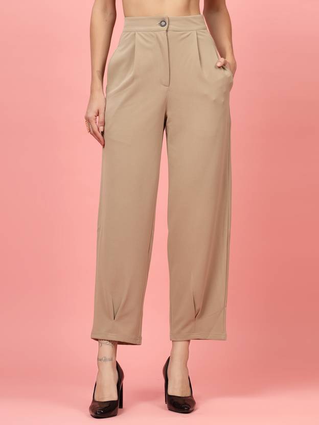 प्लस महिलाओं के लिए गुलाबी रेगुलर फ़िट ट्राउज़र्स