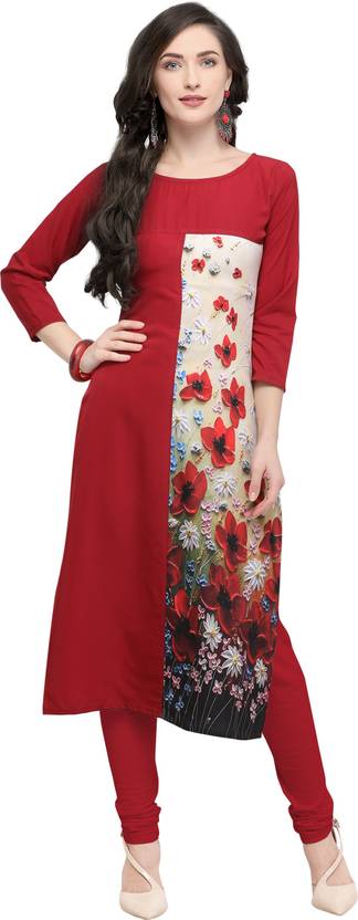 PNTMFASHION Printed Cotton Rayon Stitched Anarkali Gown (Maroon)